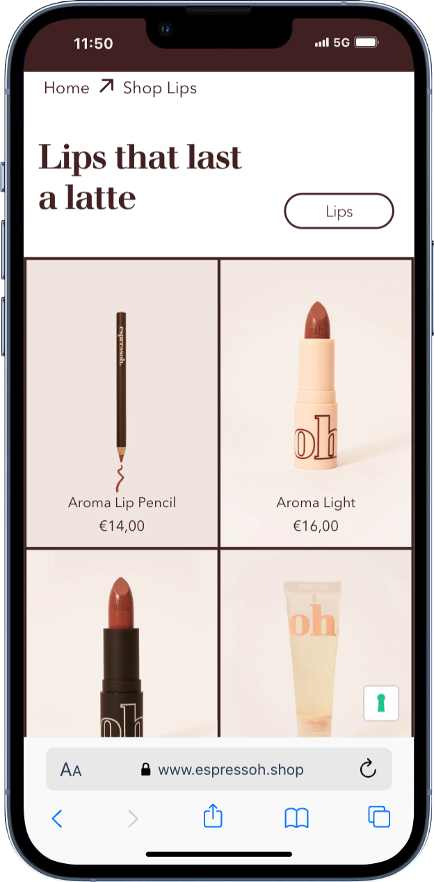 Espressoh è un marchio di bellezza pulita, un brand di make up 100% made in Italy. Si distingue per la sua comunicazione genuina e autentica, in cui le persone si rispecchiano e i prodotti tutti trasversali. Con un’identità ben definita e una forte presenza online, il brand si è affermato tra i giovani consumatori, ma necessitava di una piattaforma e-commerce all'altezza della sua crescita.